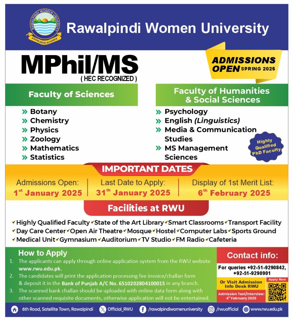 2nd Merit List for MPHIL. of Admission Fall 2025