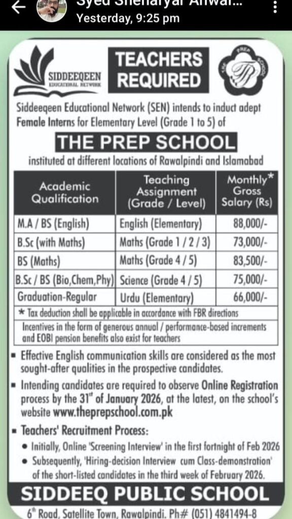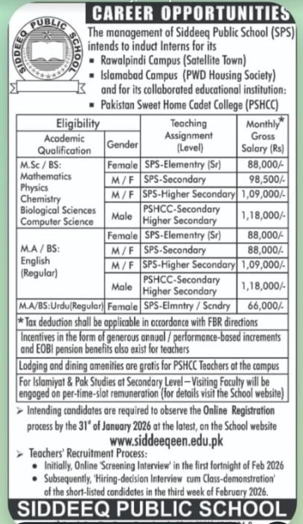 January 29, 2026 2026-01-29 12:55Career Oppurtunity Siddeeq Public School