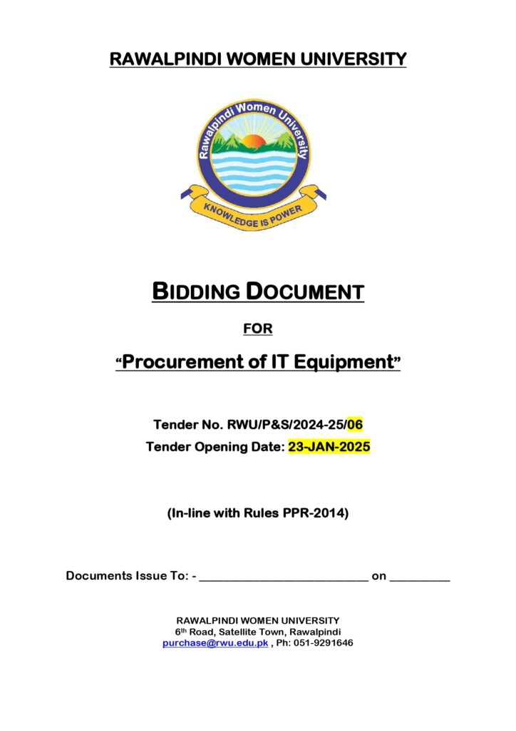 January 14, 2025 2025-01-14 13:13Tender (IT Equipment) for Publication on RWU Website