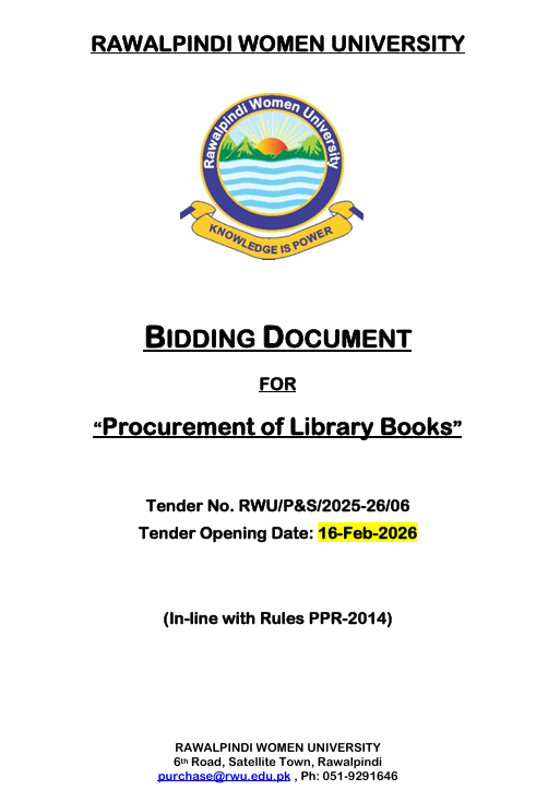 January 29, 2026 2026-01-29 15:36Tender of Procurement of Library Books