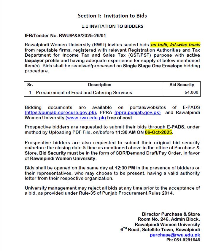 September 18, 2025 2025-09-18 19:31Tender Procurement of Food & Catering Services