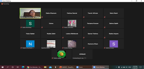 On January 30, 2021, the Quality Enhancement Cell (QEC) conducted an online training session via Zoom for faculty teaching FA/FSc classes, focusing on online assessment tools. The session introduced tools for quizzes and formative assessments, with Ms. Zakia Khanum (Assistant Professor of Geography) and Ms. Fatima Seerat (Assistant Professor of English) providing comprehensive demonstrations on Quizzes.com and Kahoot. Twenty-five participants attended the two-and-a-half-hour session, with most creating their first subject quiz during the training. Each participant was tasked with designing at least three online quizzes for student assessments. The feedback was highly positive, and a follow-up online session is planned to award certificates and recognize the top three demos.